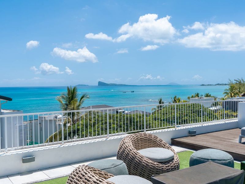 Relaxed beachfront lifestyle on Trou aux Biches, 15 minutes from Grand Baie dining and shops, with a private sea-view terrace and three bedrooms, 2.5 bathrooms.
