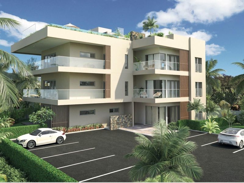 Wake up steps from Mont Choisy Beach on Mauritius' north coast, savor tropical breezes and forest views; modern 2-bed, 2-bath apartments with rooftop infinity pool and parking.