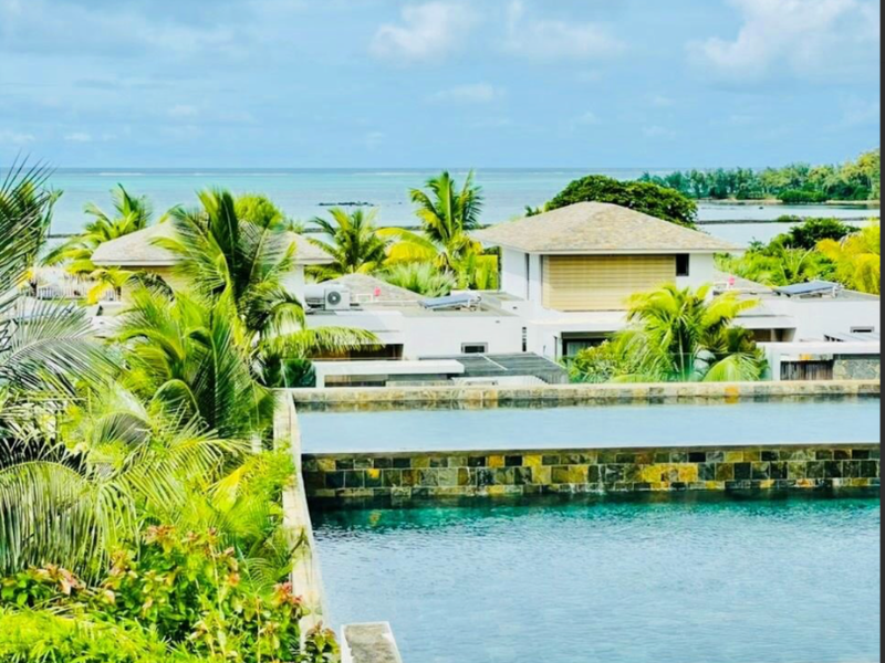 Resort-style living on Mauritius' northeast coast in Azuri, with sweeping sea and river views and expansive terraces — gourmet kitchen, three bedrooms and three bathrooms for effortless entertaining.
