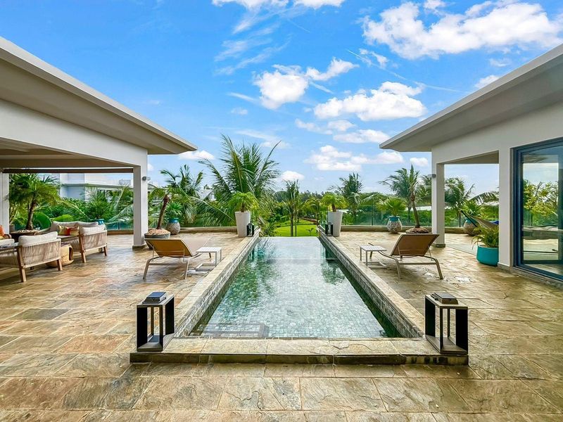 Enjoy island family living at Les Méléanes, Azuri — resort beach and golf on your doorstep, plus a rare 57m² private tropical garden; three bedrooms.