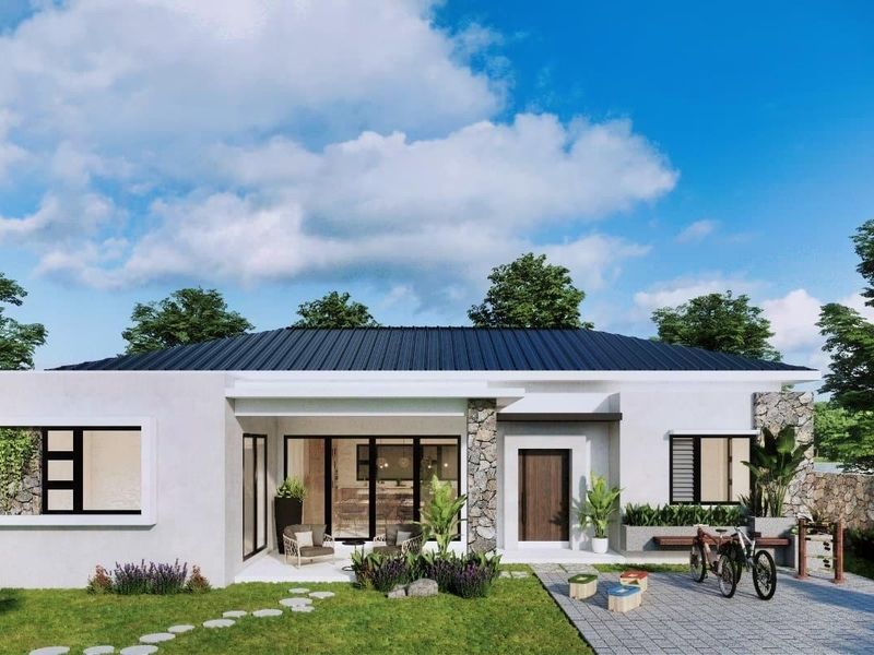 Vivez la plage à 200 m dans une villa neuve 2027 sur terrain en pleine propriété, jardin tropical et piscine de nage 28 m² — trois suites, parking 2 voitures.
