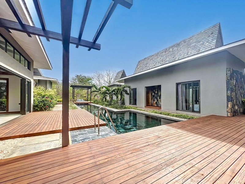 Live island life in Grand Baie’s Mont Choisy La Réserve with beach and golf access; single-level villa featuring private pool, lush garden and four en-suite bedrooms.