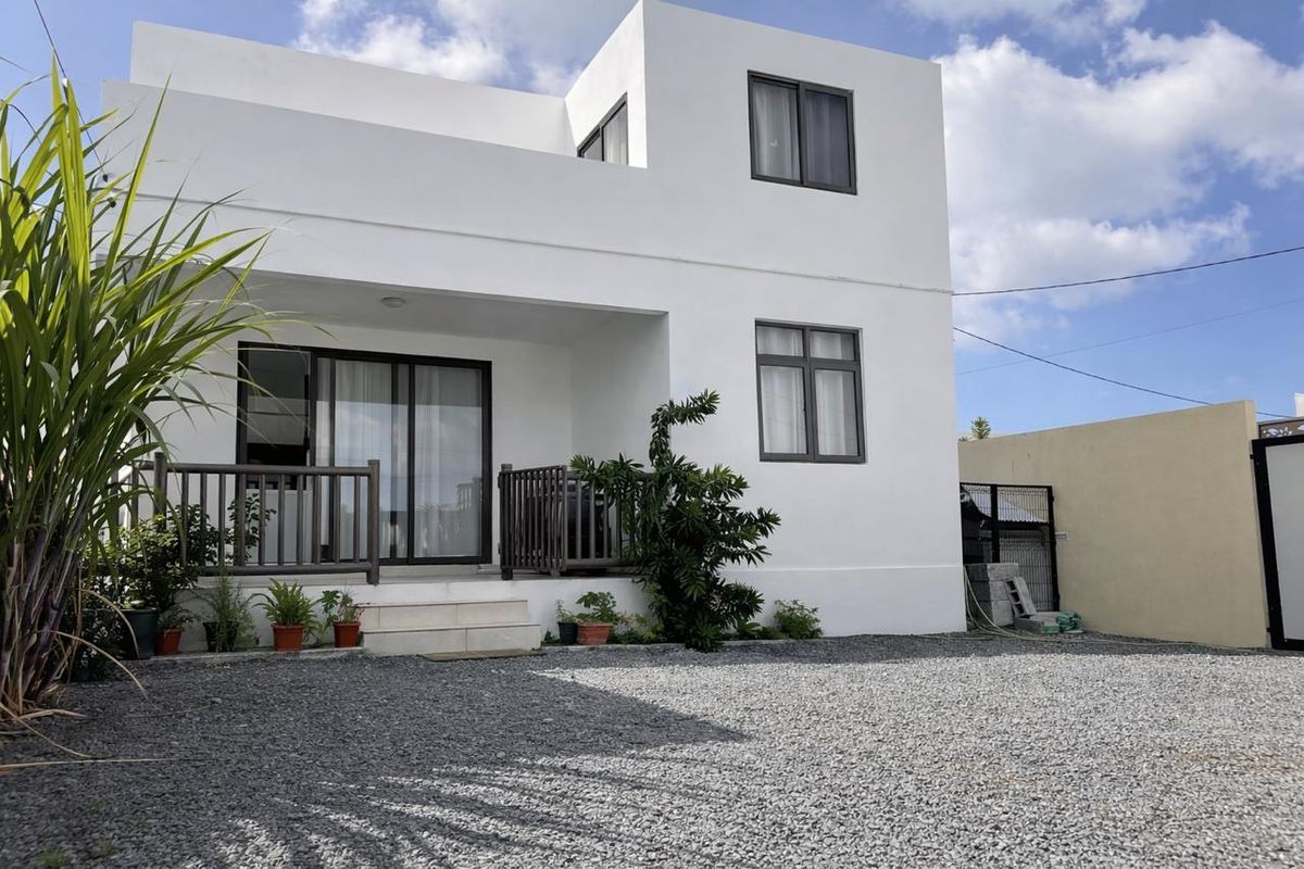 Enjoy authentic coastal village living in Grand Gaube — peaceful, fast-growing north Mauritius community. Contemporary two-level home with terrace, private courtyard with parking and pool potential; four bedrooms, two bathrooms.