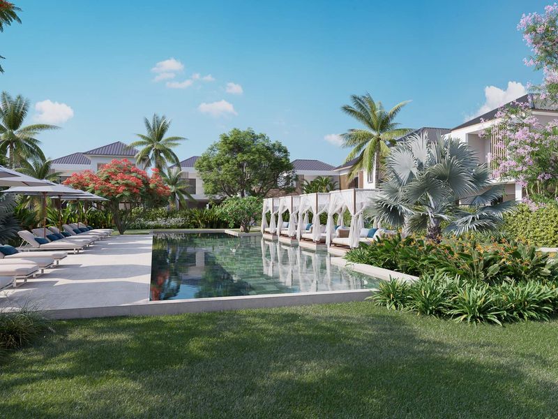Island-living retreat within lush tropical gardens on freehold land — private pool, gazebo and kiosk for seamless indoor-outdoor entertaining. Four-bedroom villas offering legacy ownership and resort-style privacy.