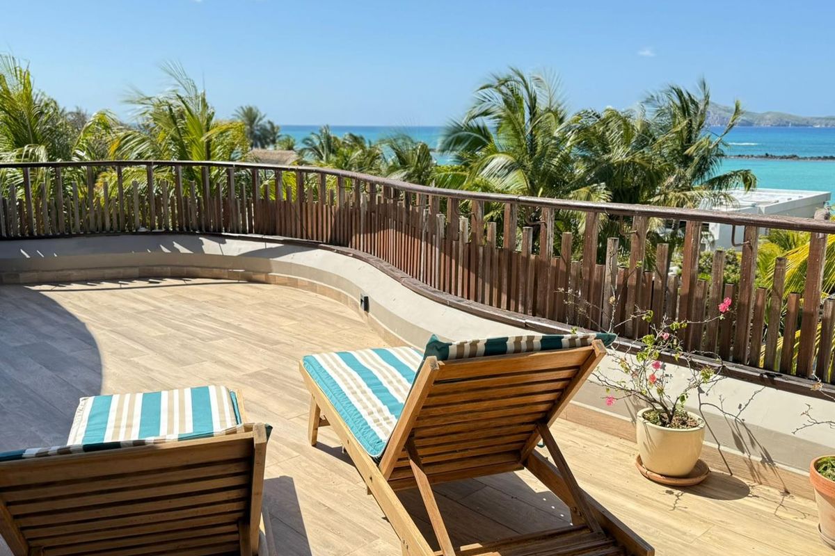 Wake up to panoramic Indian Ocean vistas and direct beach access at Cap Living, Coin de Mire — fully furnished penthouse with expansive private patio and jacuzzi, three bedrooms, three baths.